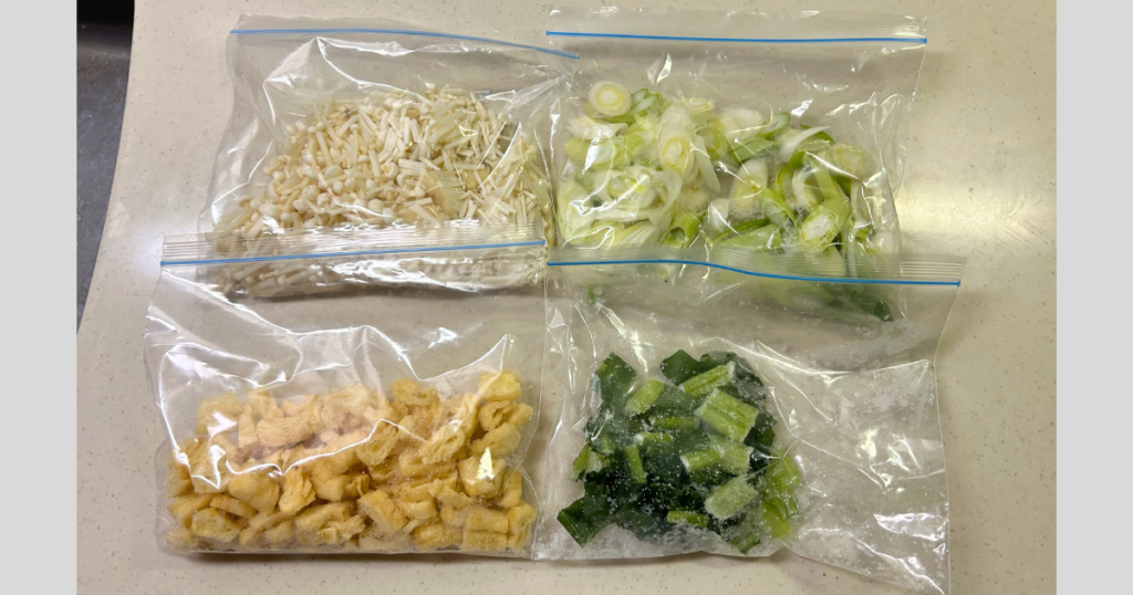 野菜を数種類、冷凍ストック。その日の気分でお鍋に入れて味噌汁がすぐに完成。