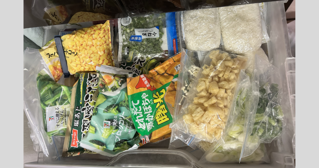 自分が料理をする中で、特によく使う食材を冷凍してストックしています。