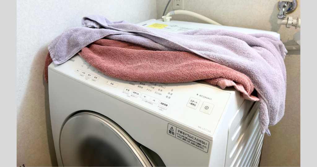 雨の日でもシーツを丸洗いできる余裕が生まれたことで、おねしょや食べこぼし、吐き戻しへの絶望感も劇的に軽減されました。洗濯が終わったらもう一度洗濯すれば良いのです。ドラム式を導入する前は、いつも干す場所が不足して限られた空間で洗濯物パズルに挑んでいた私には、これがとても画期的でした。