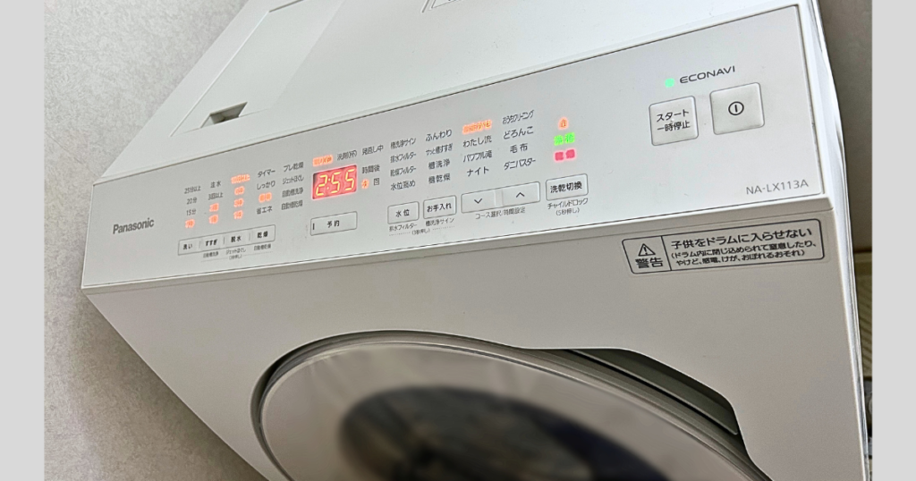 でも、スタンダードモデルを購入することで、追加のコストを抑えコスパ良く乾燥機能をゲットしました。ドラム式の上位モデルは、自動で洗剤を投入したり、スマホから洗濯を開始できたりととにかくハイテクなのですが、私のようなの使い方をする場合にはなくても全然大丈夫な機能でした。