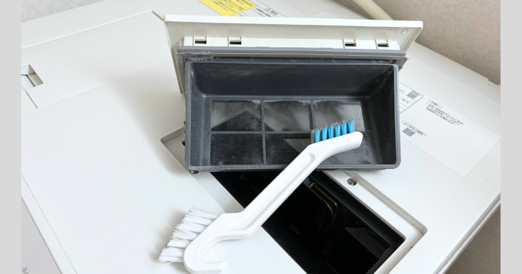 乾燥後のフィルター掃除は、100均の小さいブラシを洗濯機の横に常備しておけば5秒で終わります。