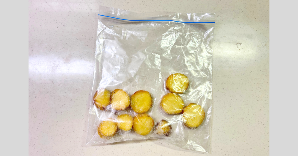 上の子が大好きで在庫を貯めておきたいのが、市販の焼き芋を輪切りにして冷凍したものです。